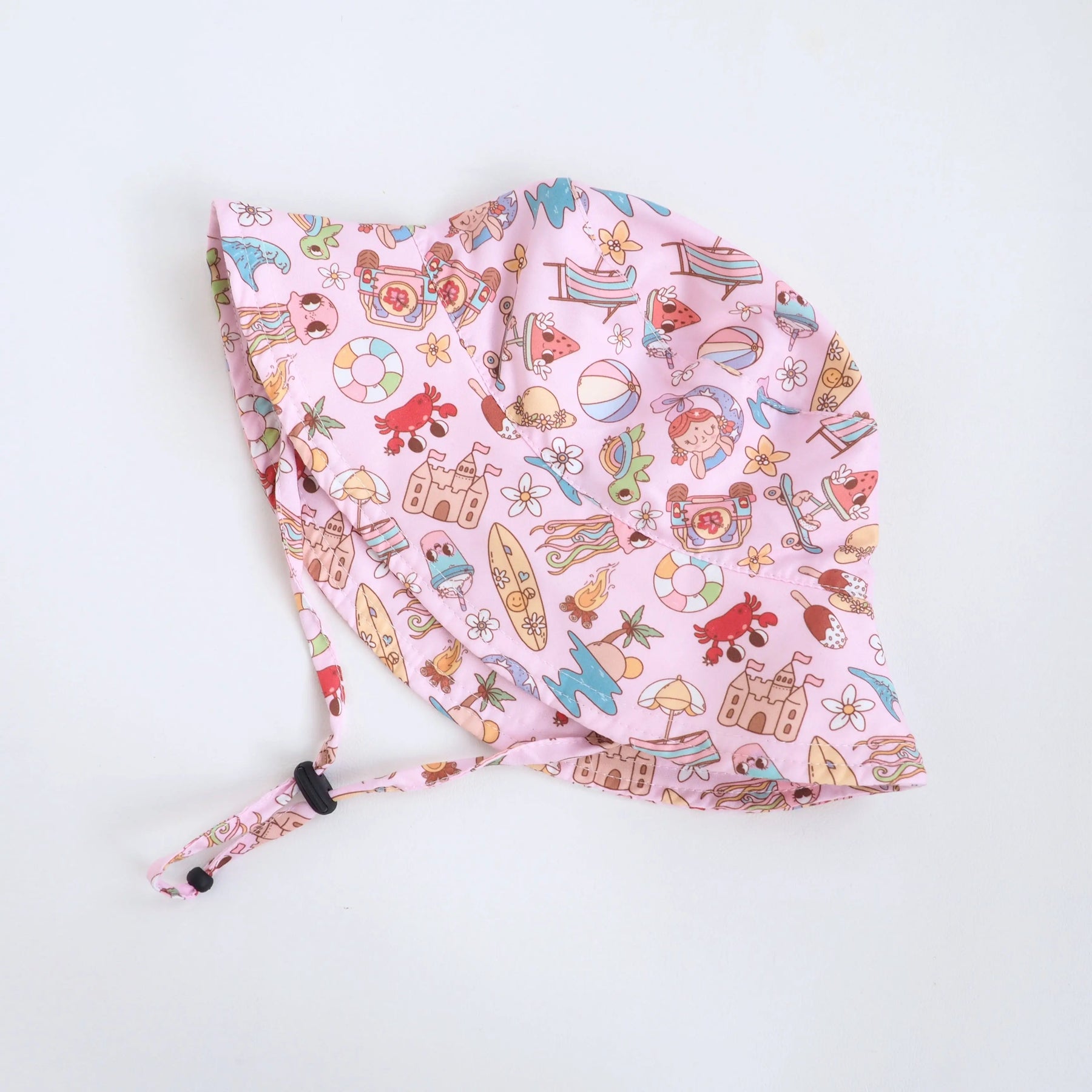 The Summer Dream design offers a playful yet boutique-friendly look that parents love for warm-weather outings. Whether it’s beach days, playground fun, vacations, or backyard play, this toddler hat stays secure and comfortable throughout the day.